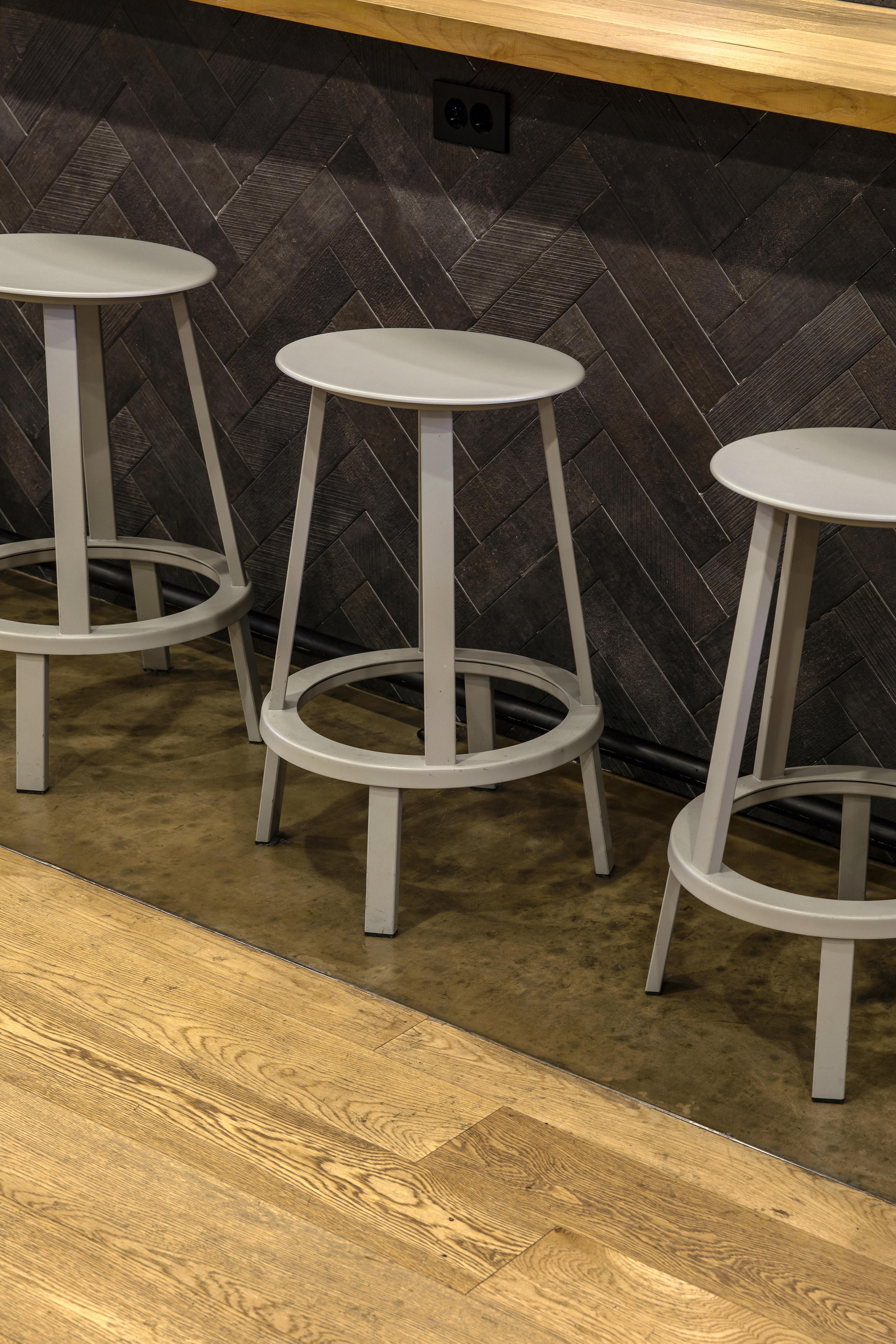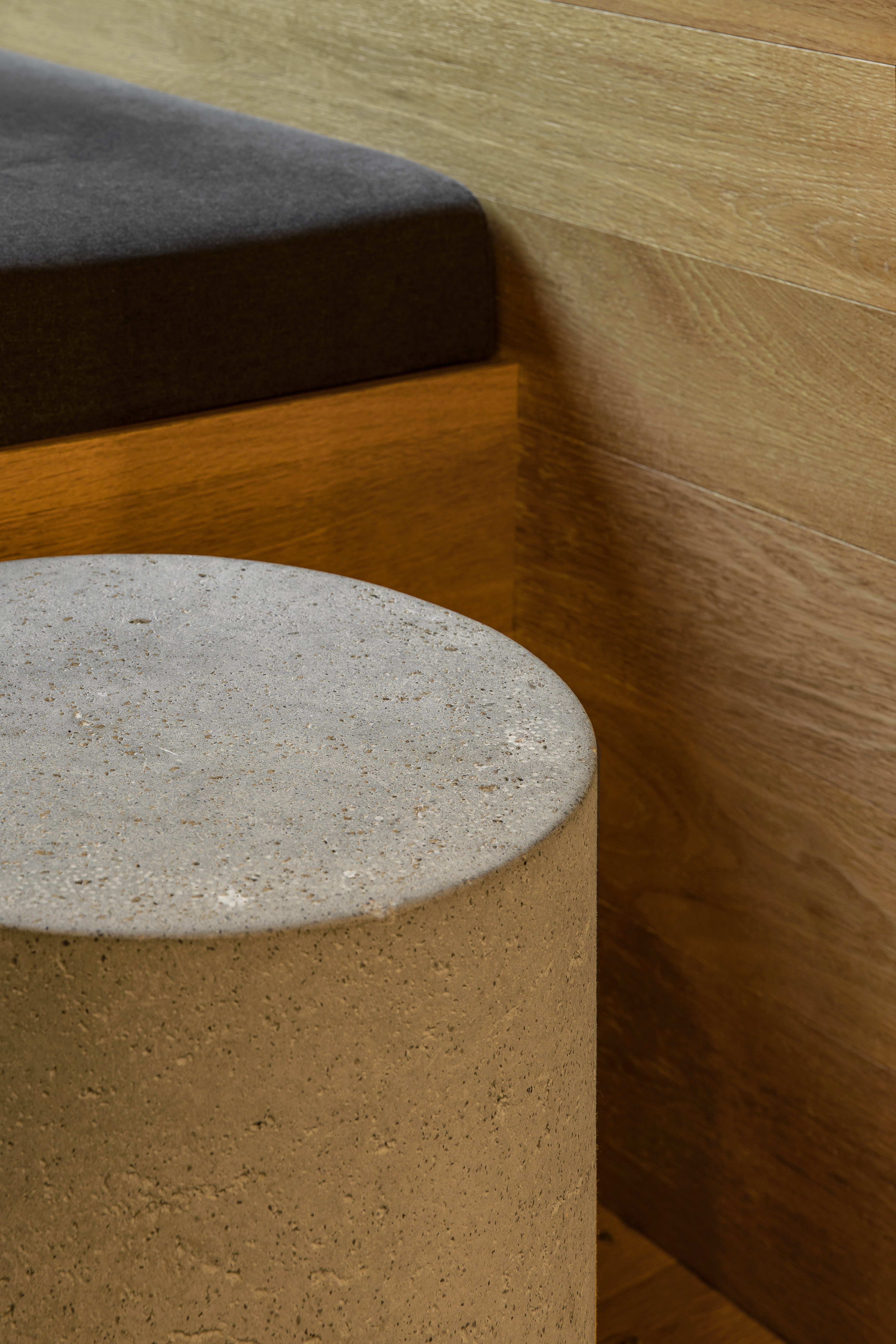 Wood planks extend from the floor through wall cladding to ceiling in this co-working lounge project in Samseong, Seoul. Lush greenery integrated in millwork separates semi-private spaces from the open, collaborative library. Completed in collaboration with Fastfive.